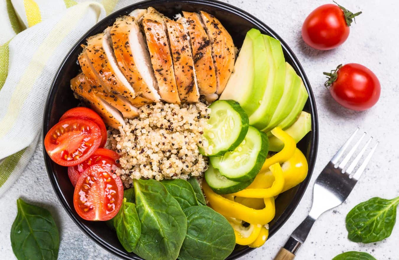 - Almoço: Salada de frango grelhado com azeite de oliva e vegetais verdes.