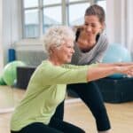 - Treinamento de Força com Pesos Leves: Usar pesos leves ou faixas de resistência ajuda a manter a massa muscular e a densidade óssea. É importante focar na forma adequada e aumentar gradualmente a resistência.